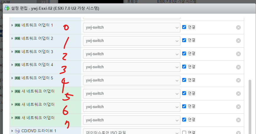 (13) 만약 분산 스위치 환경이 구성되어 있다면 업링크 포트 개수만큼 가상 스위치의 NIC도 개수를 늘린다.