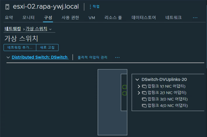 (5) ESXi-02 호스트 기준 구성된 가상 스위치 환경