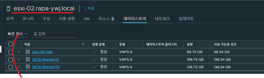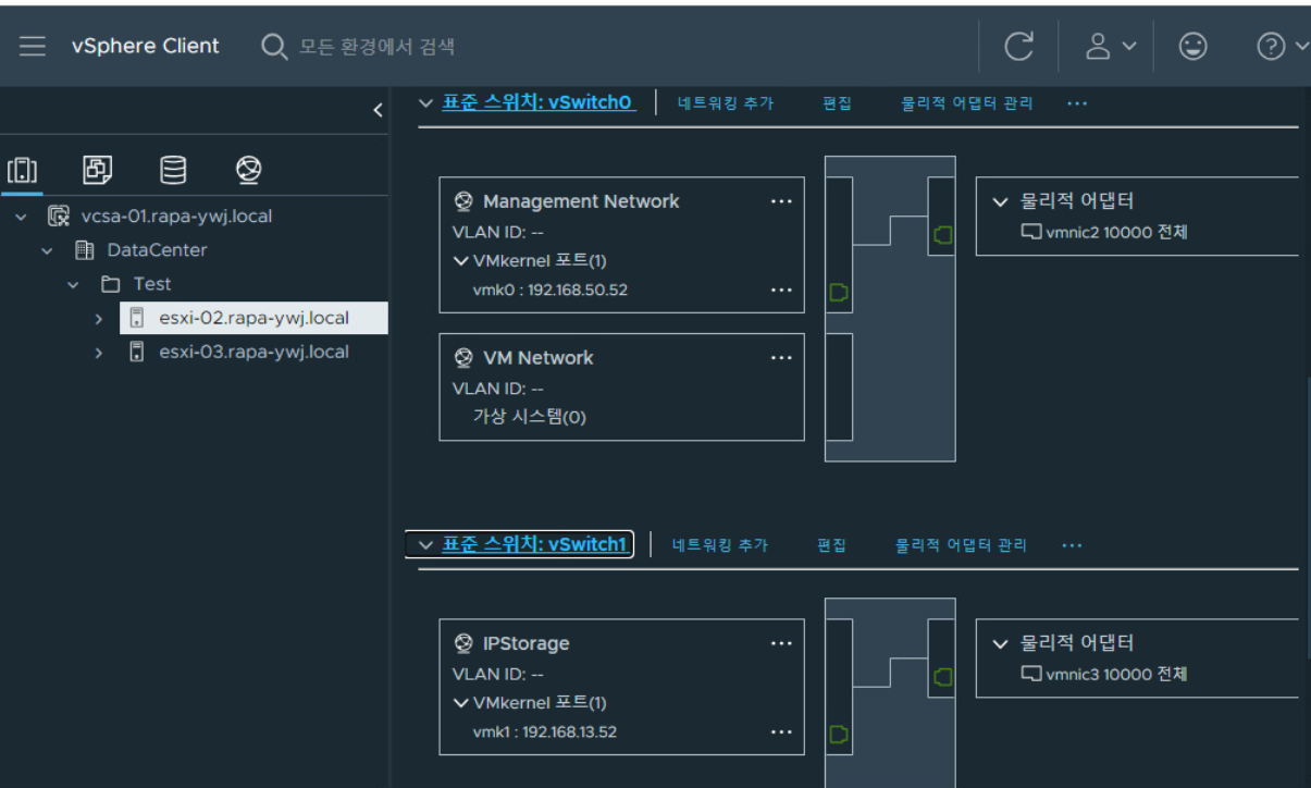 (8) 나머지 ESXi-02, 03 호스트에 대해서도 위와 동일한 설정을 진행한다.