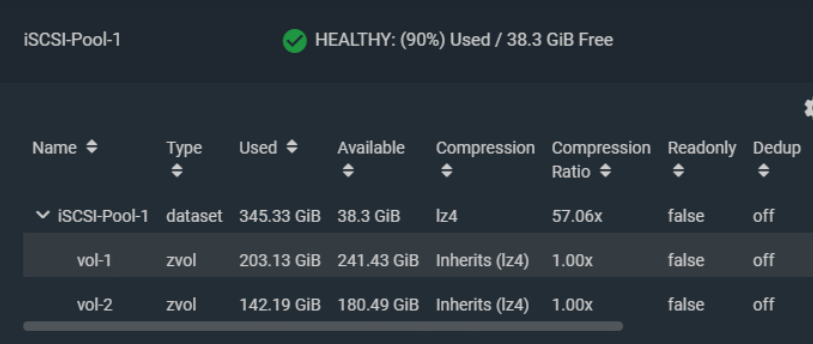1-7. FreeNAS에서 iSCSI Storage Poll & Storage Volume 생성