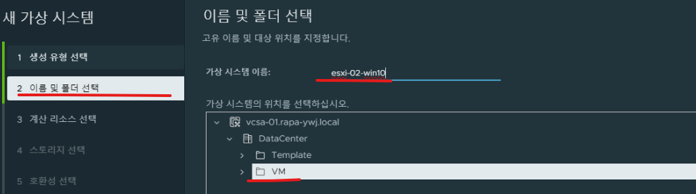 (9) 가상 시스템의 이름을 지정하고 위치를 지정한다.