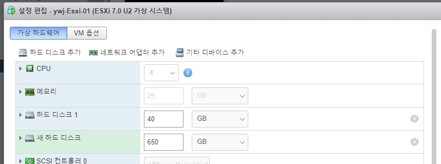 (2) 요구사항대로 ESXi-01 스펙을 지정한다.