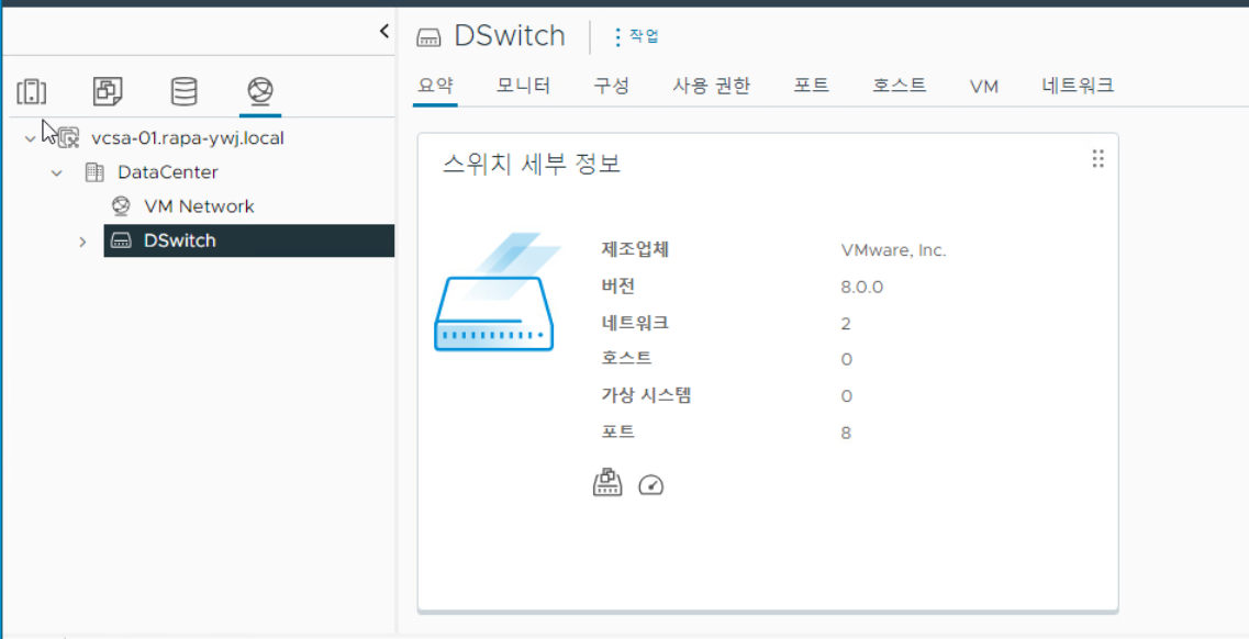 (1) 이후 실습 과정에서 분산 스위치 구성을 제거했지만 필요에 따라 분산 스위치 환경을 구성할 수도 있다.