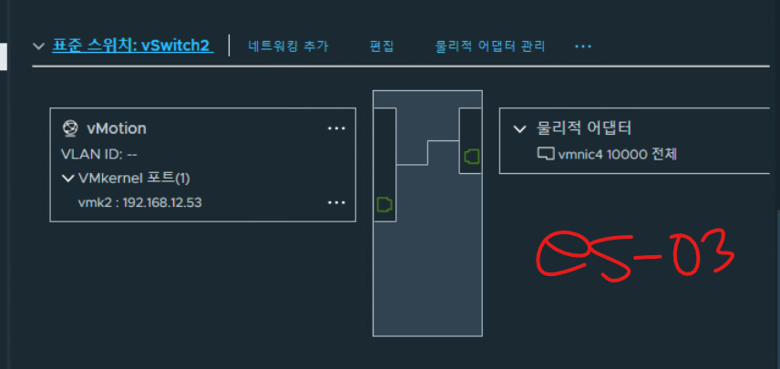 (9) ESXi-03 호스트 기준 구성된 가상 스위치 환경