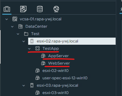 (5) 위와 같이 vApp을 구성하고 각 가상 머신들을 vApp에 추가할 수 있다.