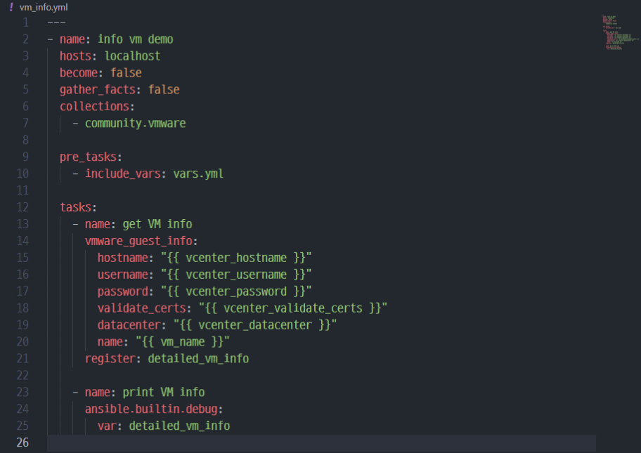(3) 가상 시스템의 정보를 출력하기 위한 vm_info.yml 스크립트를 작성한다.