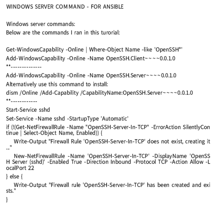 1. Windows Server Command - For Ansible Script