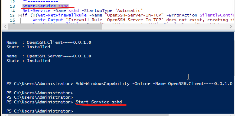 (4) sshd 서비스를 start-sevice로 Running 모드로 변경한다.