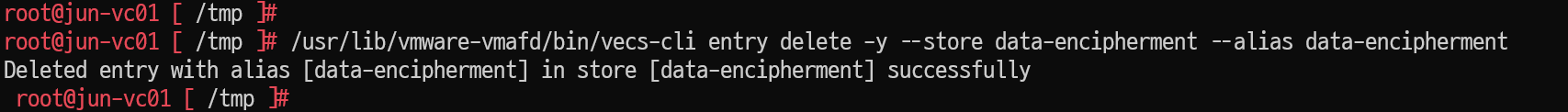 > /usr/lib/vmware-vmafd/bin/vecs-cli entry delete -y --store data-encipherment --alias data-encipherment
