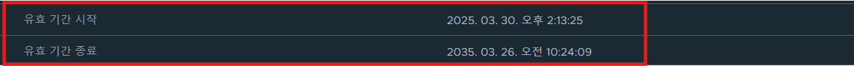 - 하지만 GUI 상에서 갱신을 한 번 더 해주면 10년 유효 인증서가 추가적으로 생성된다.