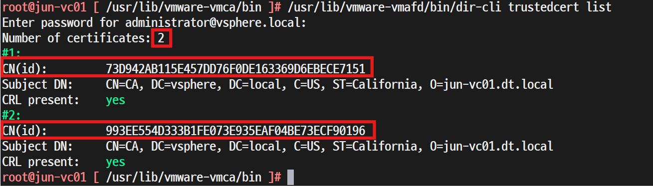 > /usr/lib/vmware-vmafd/bin/dir-cli trustedcert list