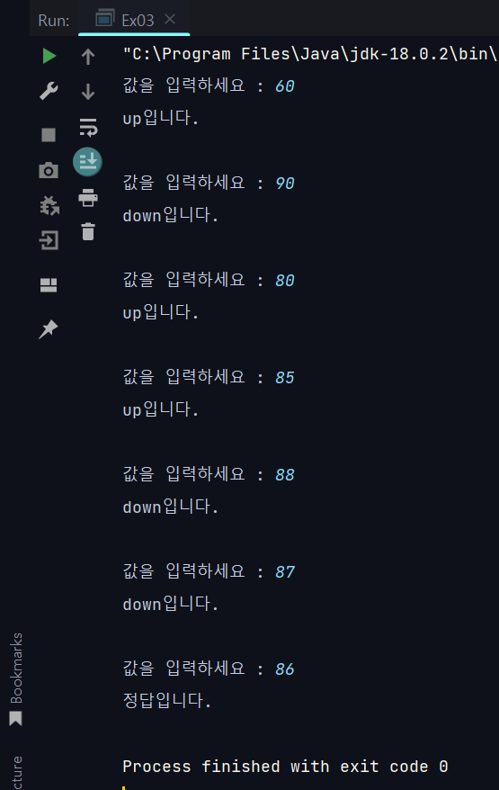 else if(number > input) System.out.printf("up입니다.%n%n");