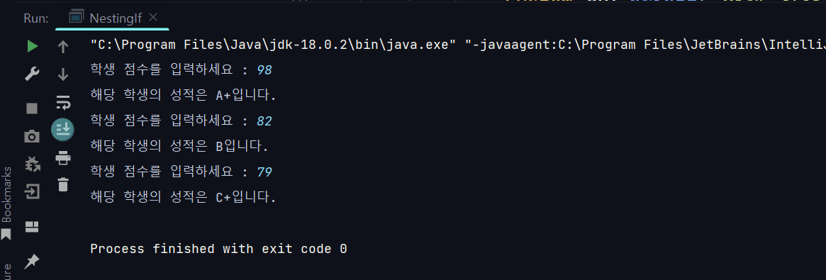 else if (studentScore >= 80) System.out.println("해당 학생의 등급은 B입니다.");