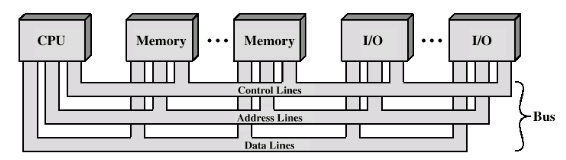 - 모든 버스에서 선들은 기능에 따라 데이터 선(Data lines), 주소 선(Address lines), 제어 선(Control lines)으로 분류되고 그 외엔, 접속된 각 모듈들에게 전원을 공급하기 위한 전력 분배 선들(Power distribution lines)이 존재합니다.