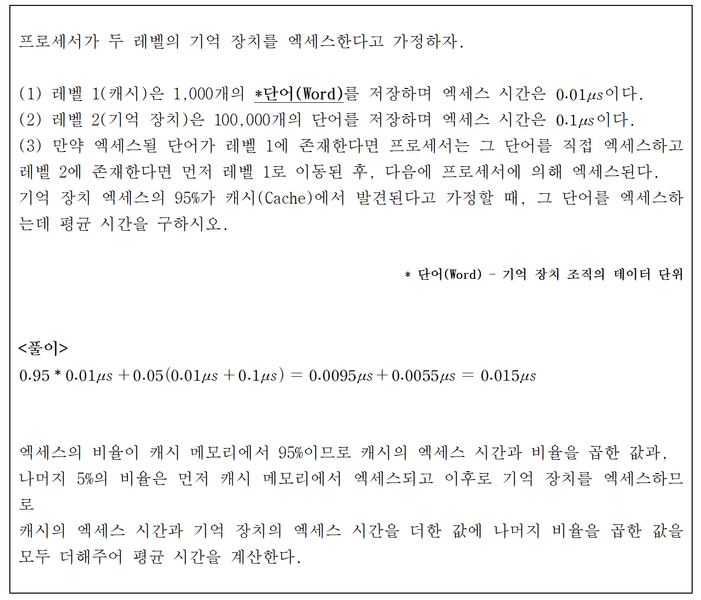 (즉, 주소가 기억 장치에 도달하는 순간부터 데이터가 저장되거나 읽혀지는 순간까지의 시간을 의미)