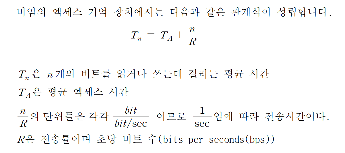 ( 비임의 엑세스 기억 장치(Non-random access memory, 예시 : HDD) 에서의 엑세스 시간은 읽기-쓰기 메커니즘을 원하는 위치로 이동시키는데 걸리는 시간을 의미)
