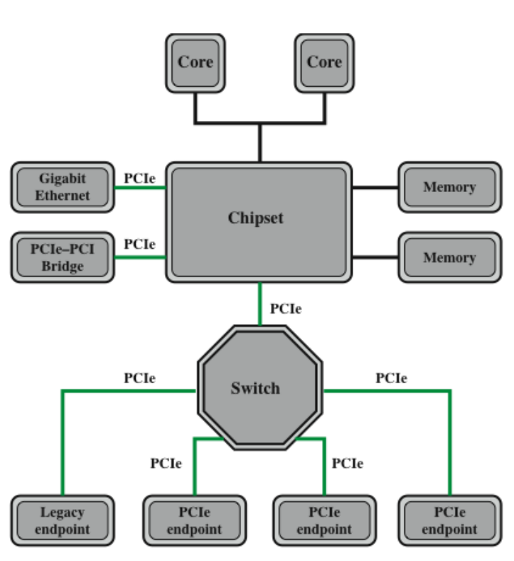 - 높은 속도와 경제적인 측면에서 많이 사용되었으나, 시스템 버스와 마찬가지로 버스 기반 PCI 방식은 접속되는 장치들의 데이터율을 맞추지 못하는 문제가 발생하여 PCI Express(PCIe)이 개발되었습니다.