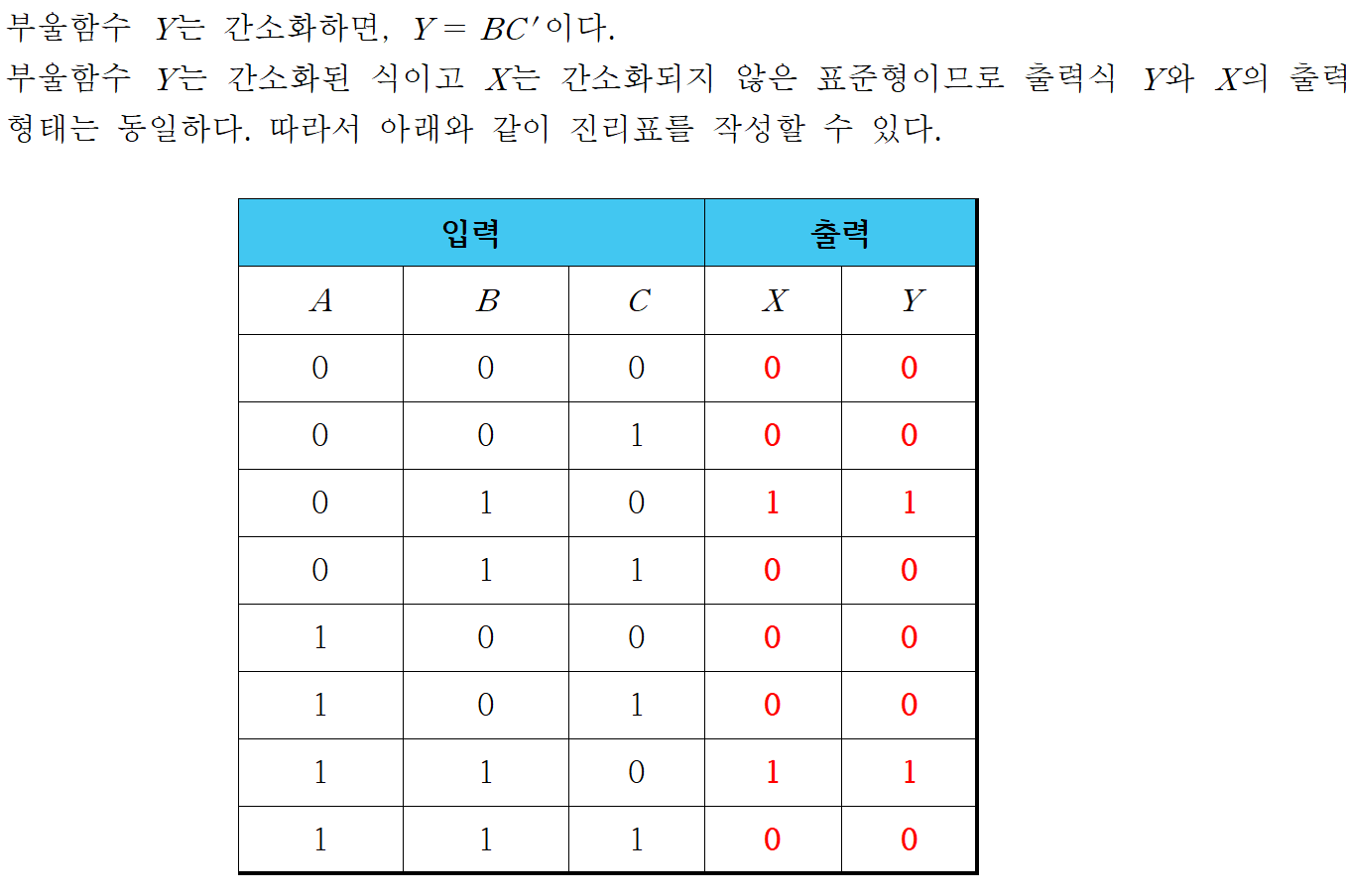 - 논리 회로를 부울 함수로 표현한 후, 부울 함수를 간소화합니다.