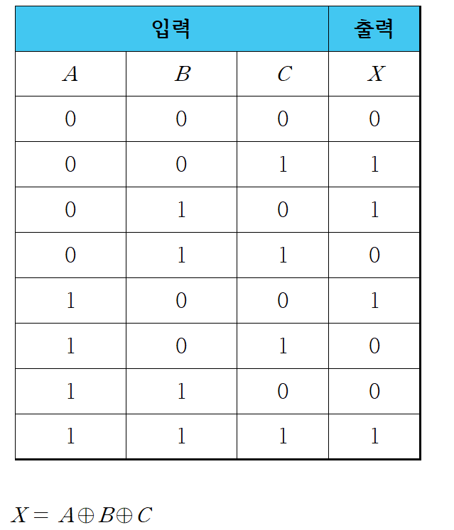 - 홀수 패리티(Odd parity)를 구현할 때 주로 사용합니다.