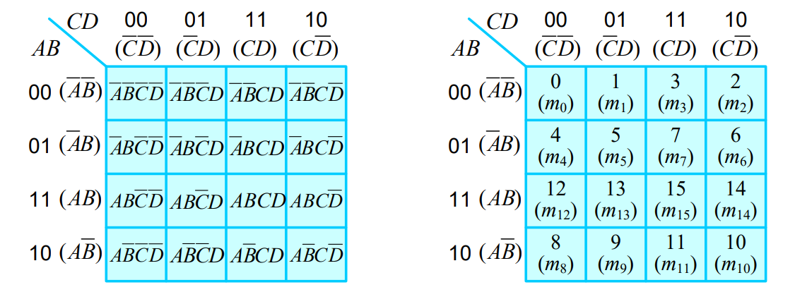 - 5변수 이상의 부울식에 대해선 일반적으로 카르노 맵 방법을 사용하지 않습니다.