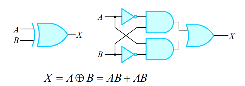 - XOR(Exclusive OR) 게이트는 베타적 OR 게이트 또는 배타적 논리합(Exclusive logical sum)이라고도 하며 1을 홀수 개 입력하면 1을 출력하고 짝수 개 입력하면 0을 출력합니다.