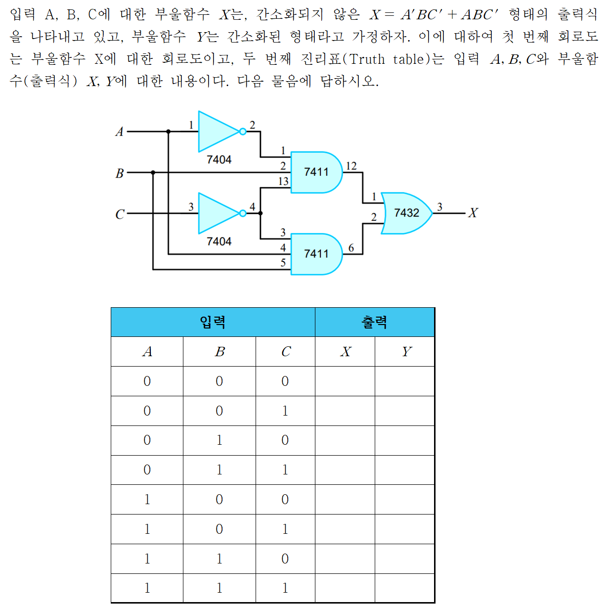 (2) 부울함수 Y까지 포함하여 회로도 작성