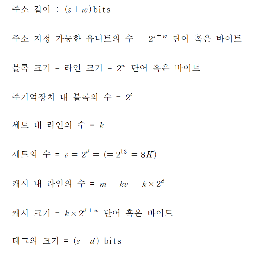 | 캐시 라인(Cache line) | Main memory blocks held |