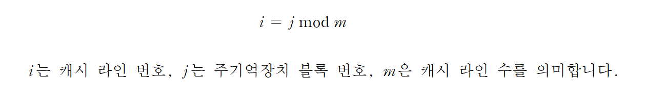 - 주기억장치의 각 데이터 블록을 한 개의 캐시 라인으로만 사상하는 방식입니다.