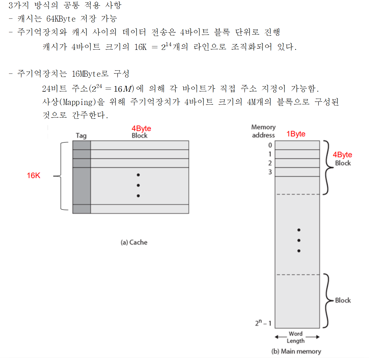 - 프로세서와 캐시는 워드(Word) 단위로 데이터를 주고받으며 캐시와 주기억장치는 Block 단위로 데이터를 주고받습니다.