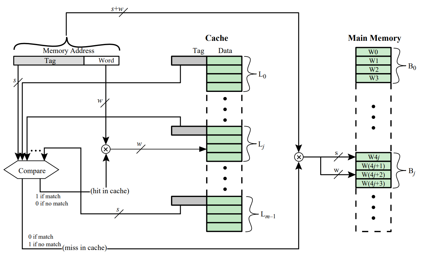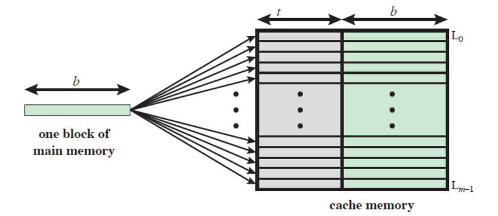 - 프로세서가 요구하는 데이터 블록이 캐시에 있는지 확인하기 위해서 태그가 일치하는지 모든 캐시 라인과 비교가 필요합니다.