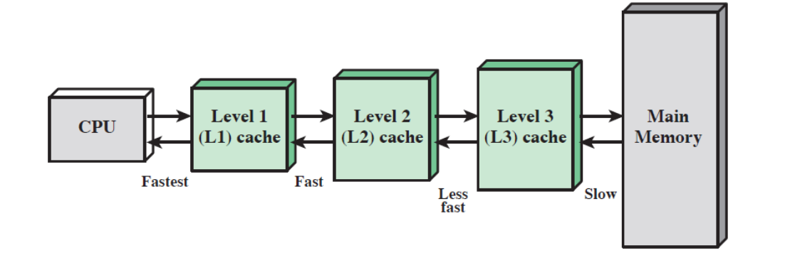 - L2 캐시는 L1 캐시보다 느리며 용량이 더 크고 이에 따라 L3 캐시도 L2 캐시보다 느리며 용량이 더 큽니다.