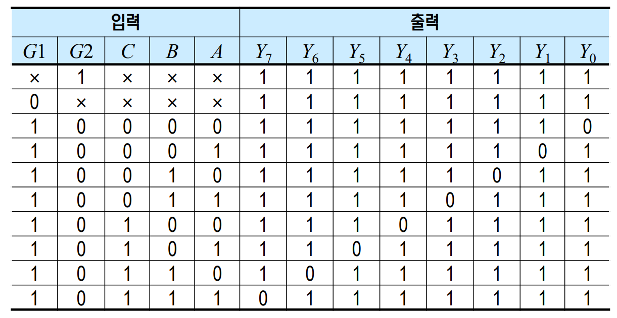 - G1은 Active-high, G2(G2A, G2B)는 Active-low