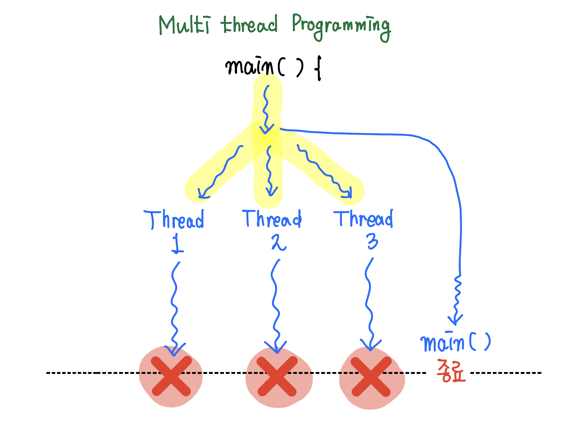 - 각 스레드의 작업을 모두 완료하려면 Main 스레드가 종료되지 않아야 합니다.