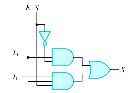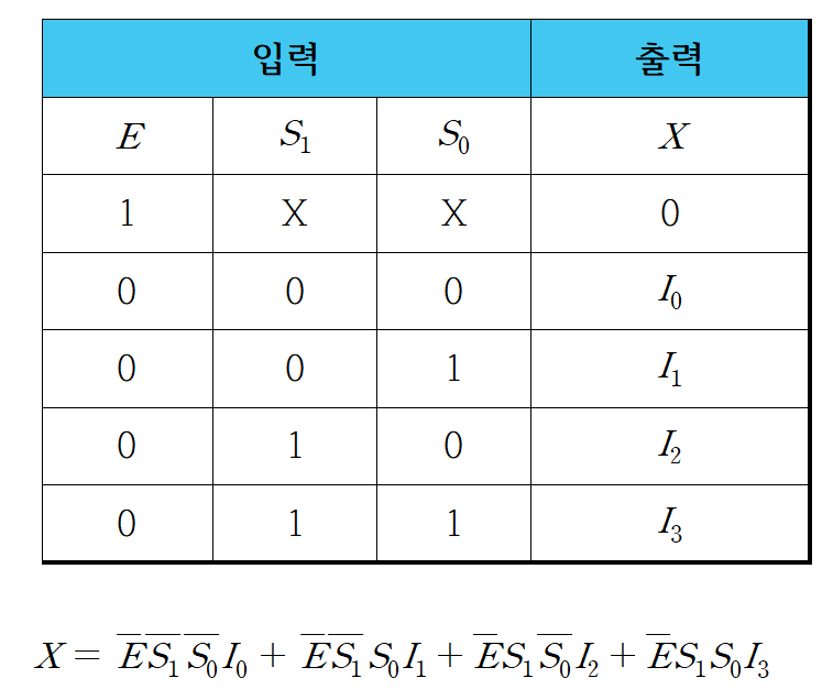 - 1 x 4 디멀티플렉서는 입력 E가 출력의 형태를 가지고 있습니다.