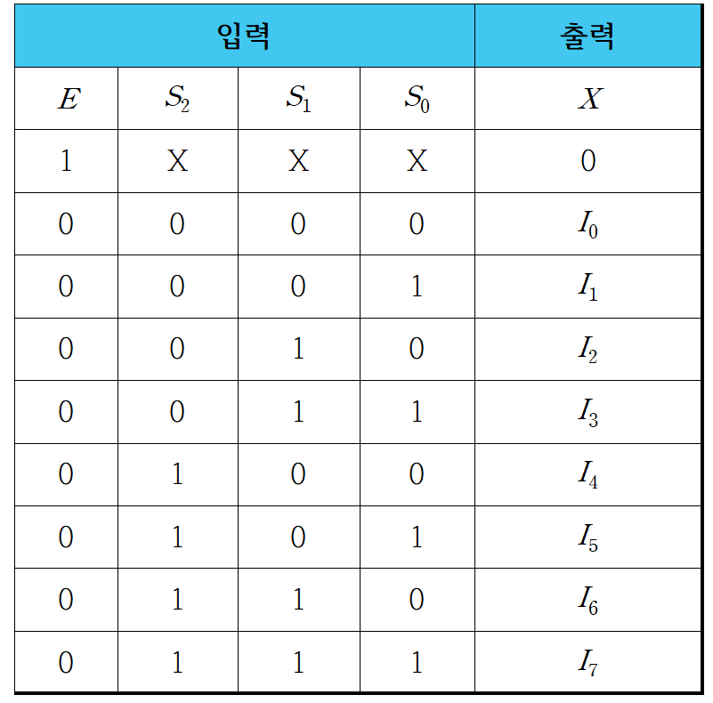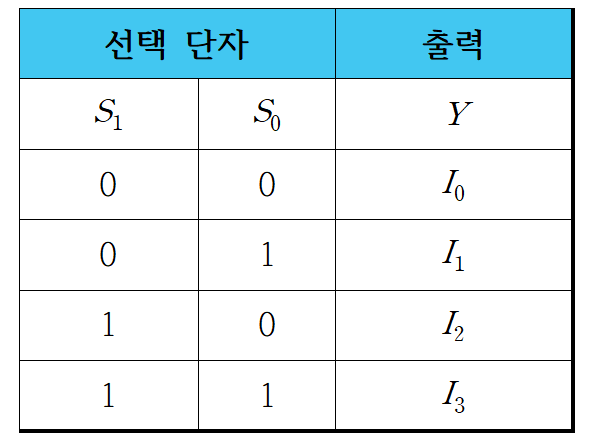 - 선택선의 값에 따라 입력선 중 하나를 선택하여 출력