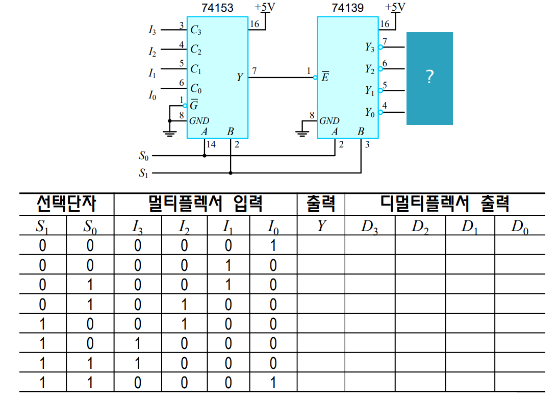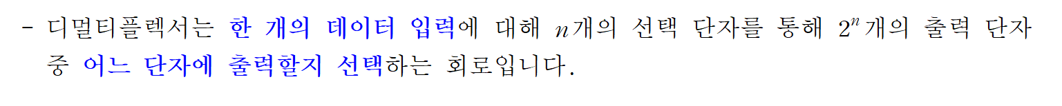 - 디멀티플렉서는 디코더와 함께 사용되며 디코더를 통해 디멀티플렉서를 구현할 수 있습니다.