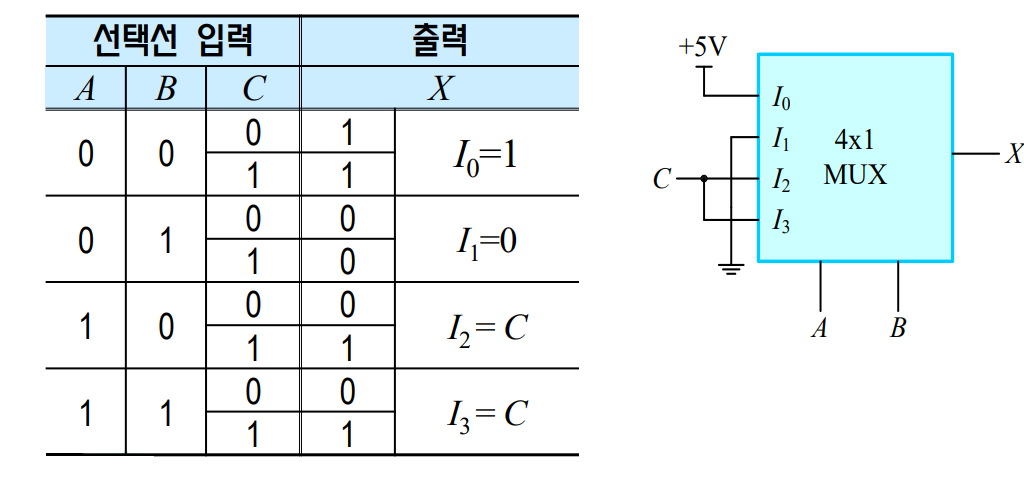 - 멀티플렉서로도 조합 논리회로를 구현할 수 있습니다.