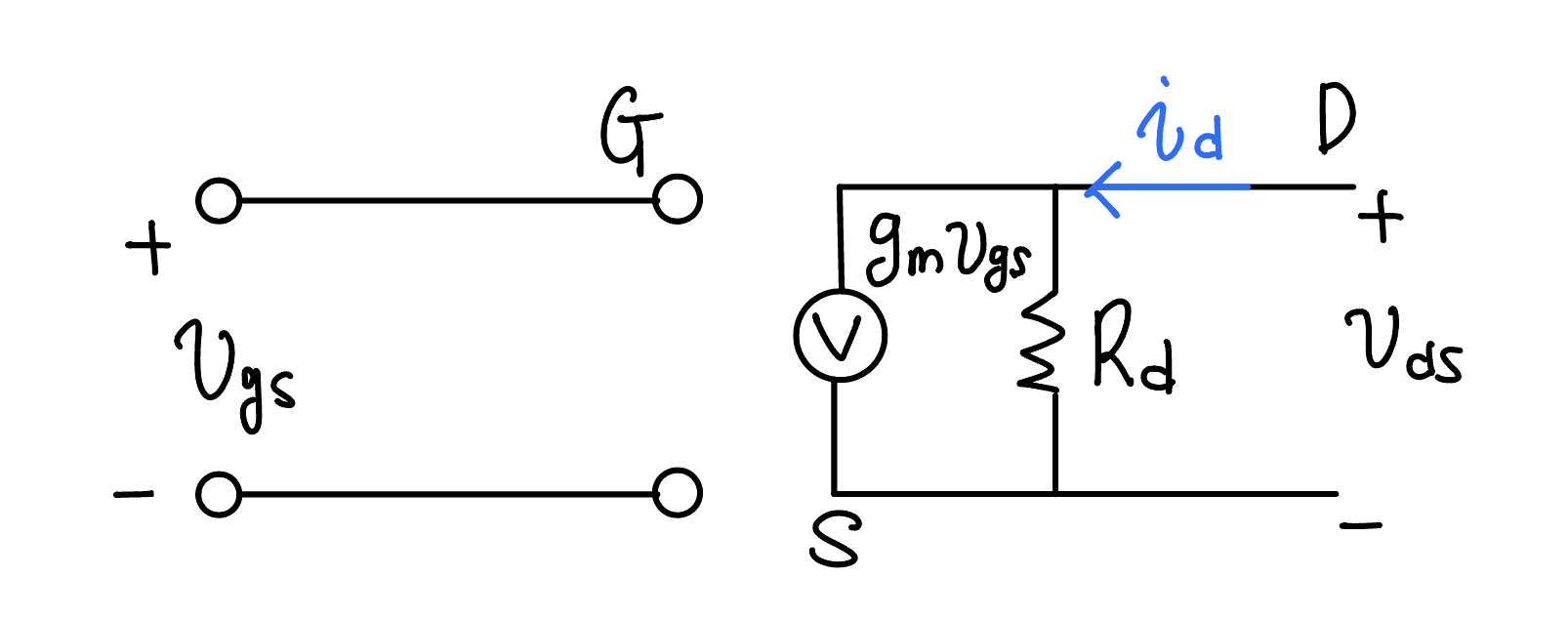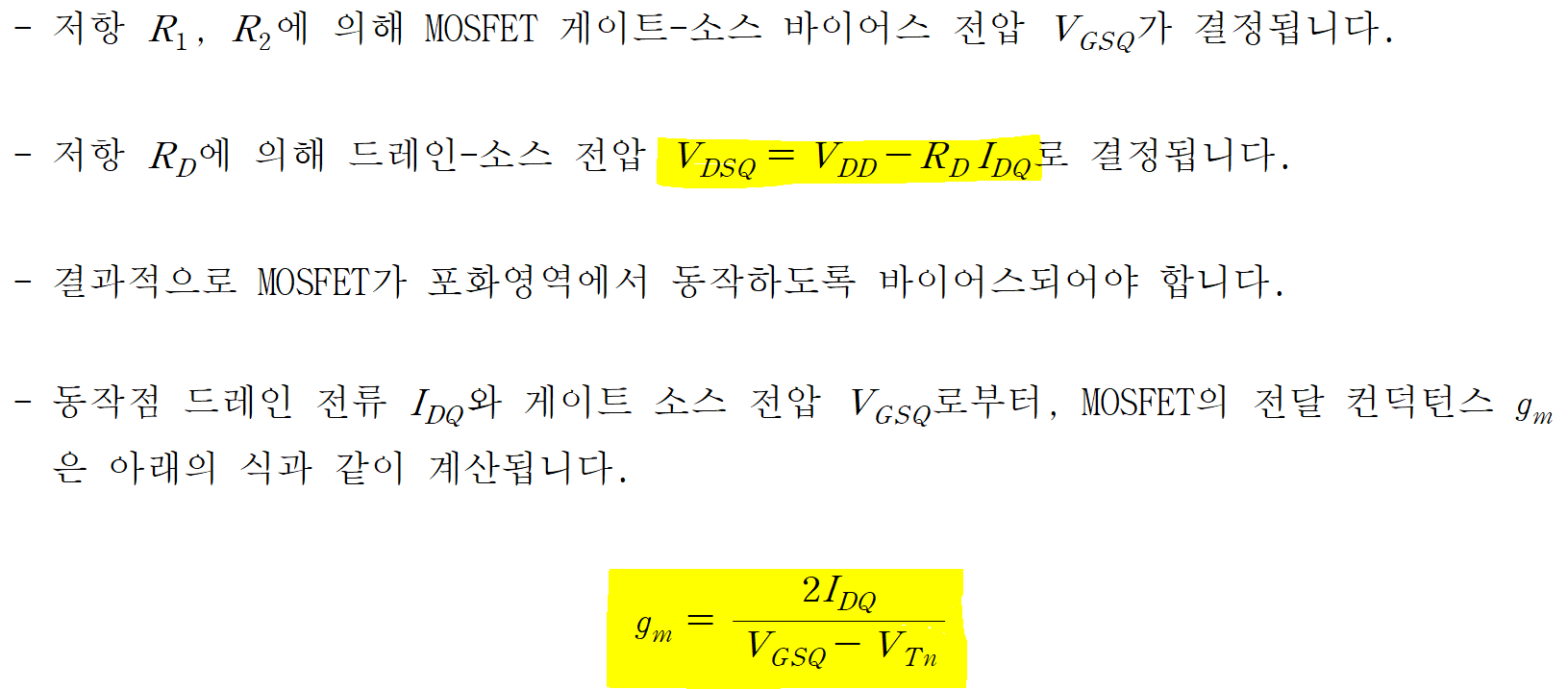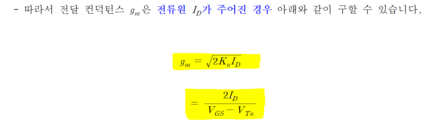 (포화영역에서 동작하는 MOSFET는 게이트-소스 전압에 의해 제어되는 전압제어 전류원으로 동작)