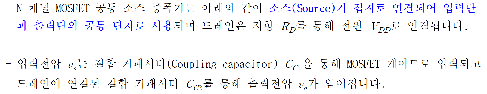 1. MOSFET 공통 소스 증폭기