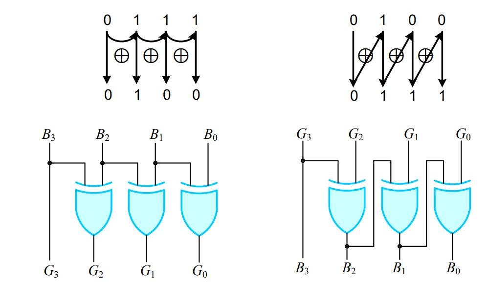 1-2. (좌) 2진 코드 → 그레이 코드 / (우) 그레이 코드 → 2진 코드