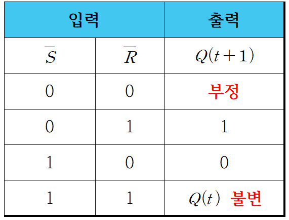 - NAND 게이트 래치 또는 NOR 게이트 래치가 존재합니다.