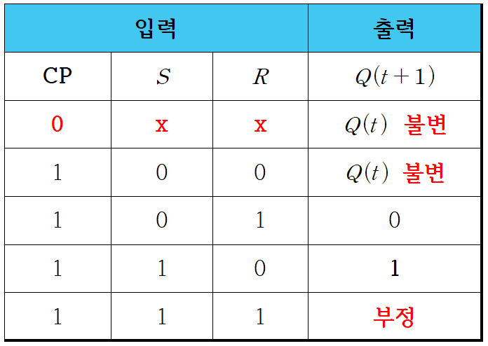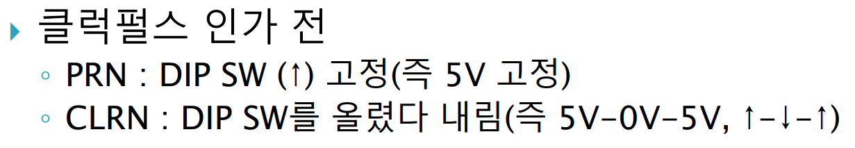 - PR은 비동기 신호로, 클록과 관계없이 1을 세팅하고, CLR은 0을 세팅합니다.
