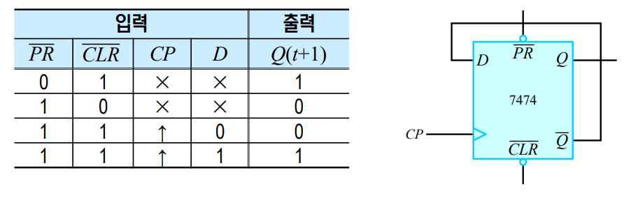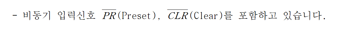 - 여기서 비동기 입력 신호는, 클록 펄스와 관계가 없으며 주로 초기값을 결정하고자 할 때 사용되는 신호입니다.