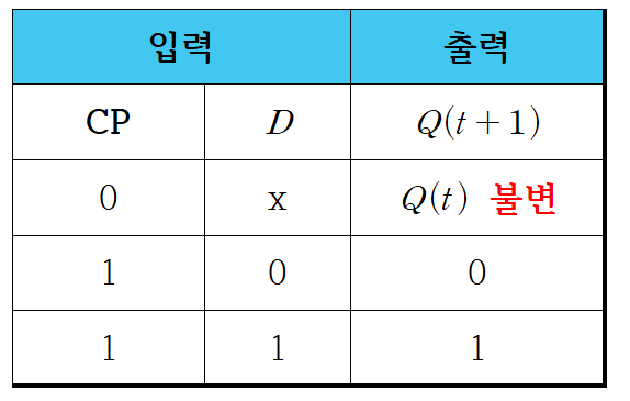 - D 래치는 입력된 데이터가 그대로 저장되는 특성을 가집니다.