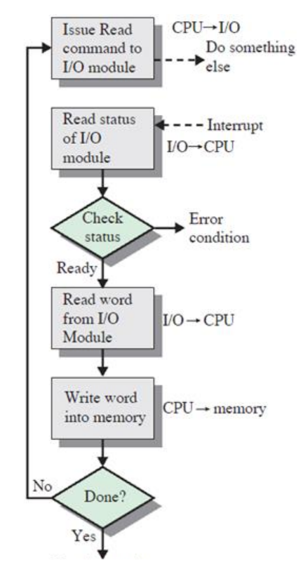 - I/O 모듈은 CPU에게 직접적으로 알리지 않고 인터럽트도 걸지 않습니다.