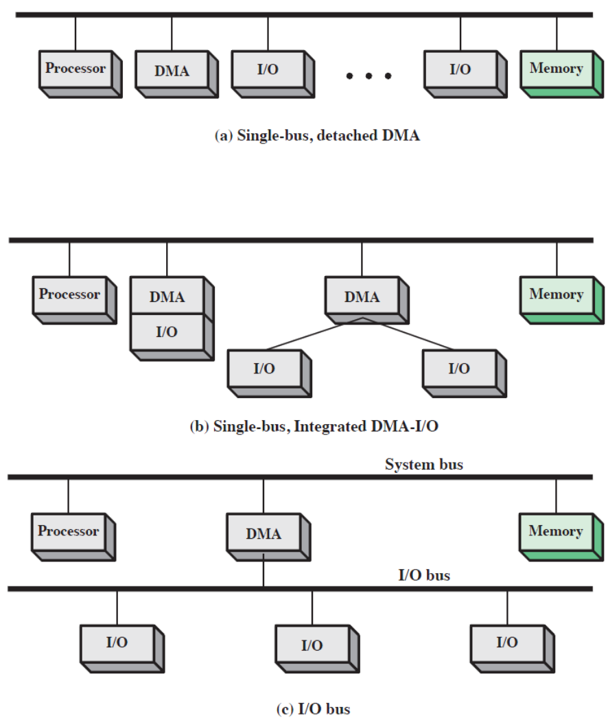 - I/O 모듈들은 I/O 버스를 통해 DMA 모듈에 연결되며 시스템 확장에 용이한 구성 방법입니다.