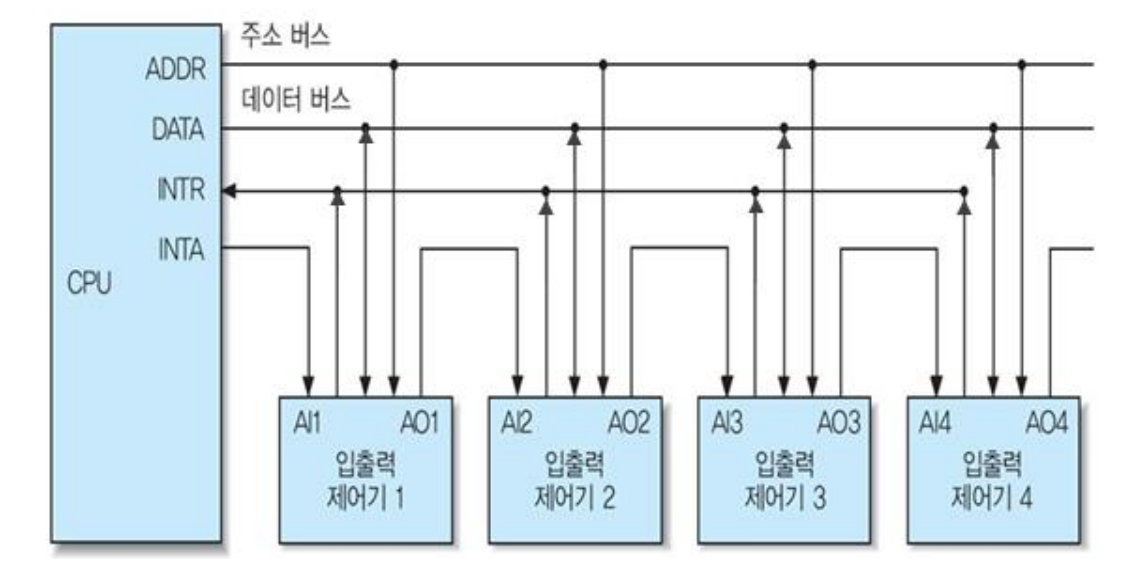 - 인터럽트를 요구하지 않은 모듈은 다음 모듈로 통과합니다.