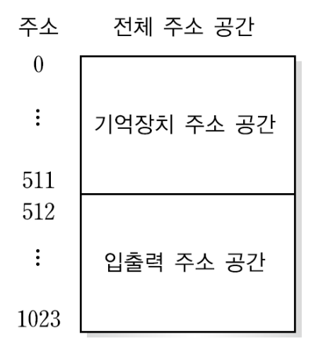 - 프로세서 주기억장치, I/O 모듈이 한 개의 버스를 공유할 때 주소를 지정하는 방식입니다.