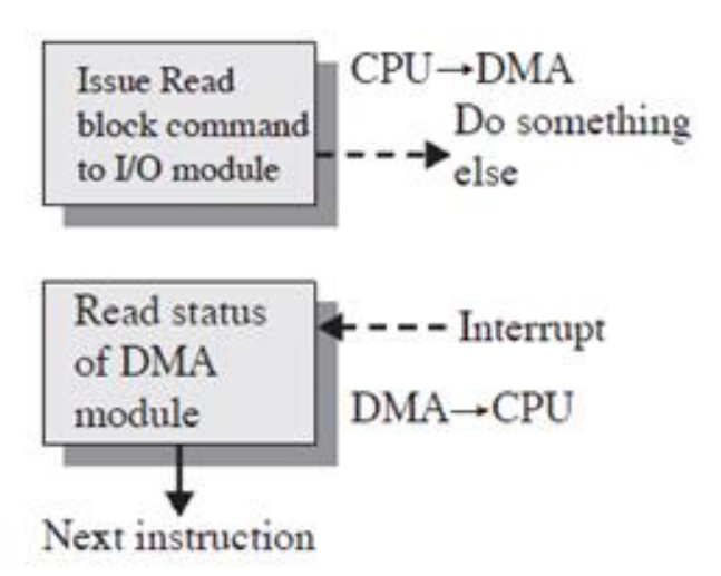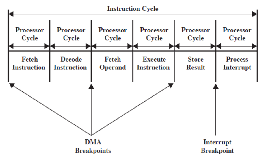 - DMA 모듈은 한 단어를 전송한 뒤에 버스를 프로세서에게 돌려줍니다.