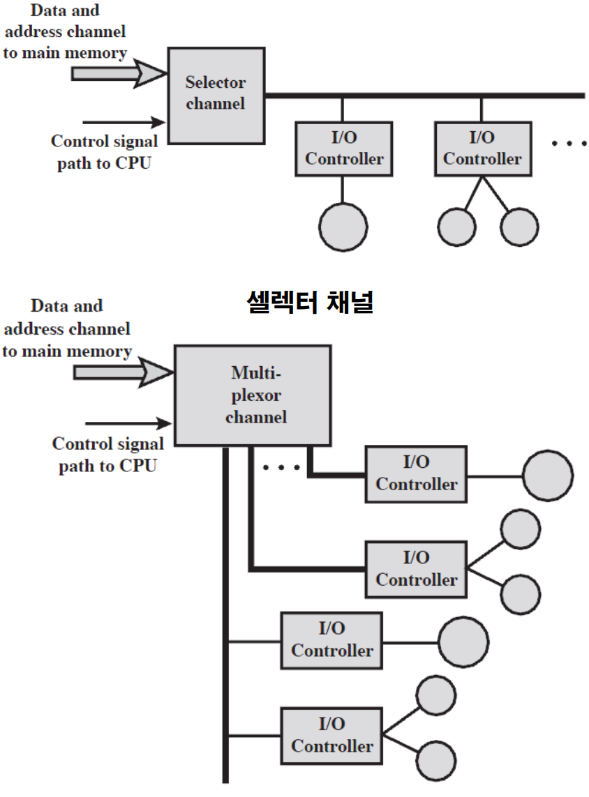 - 데이터선 : I/O 장치의 주소, 데이터가 읽히거나 쓰여질 주기억장치 영역의 시작 주소, 전송될 데이터 단어들의 수